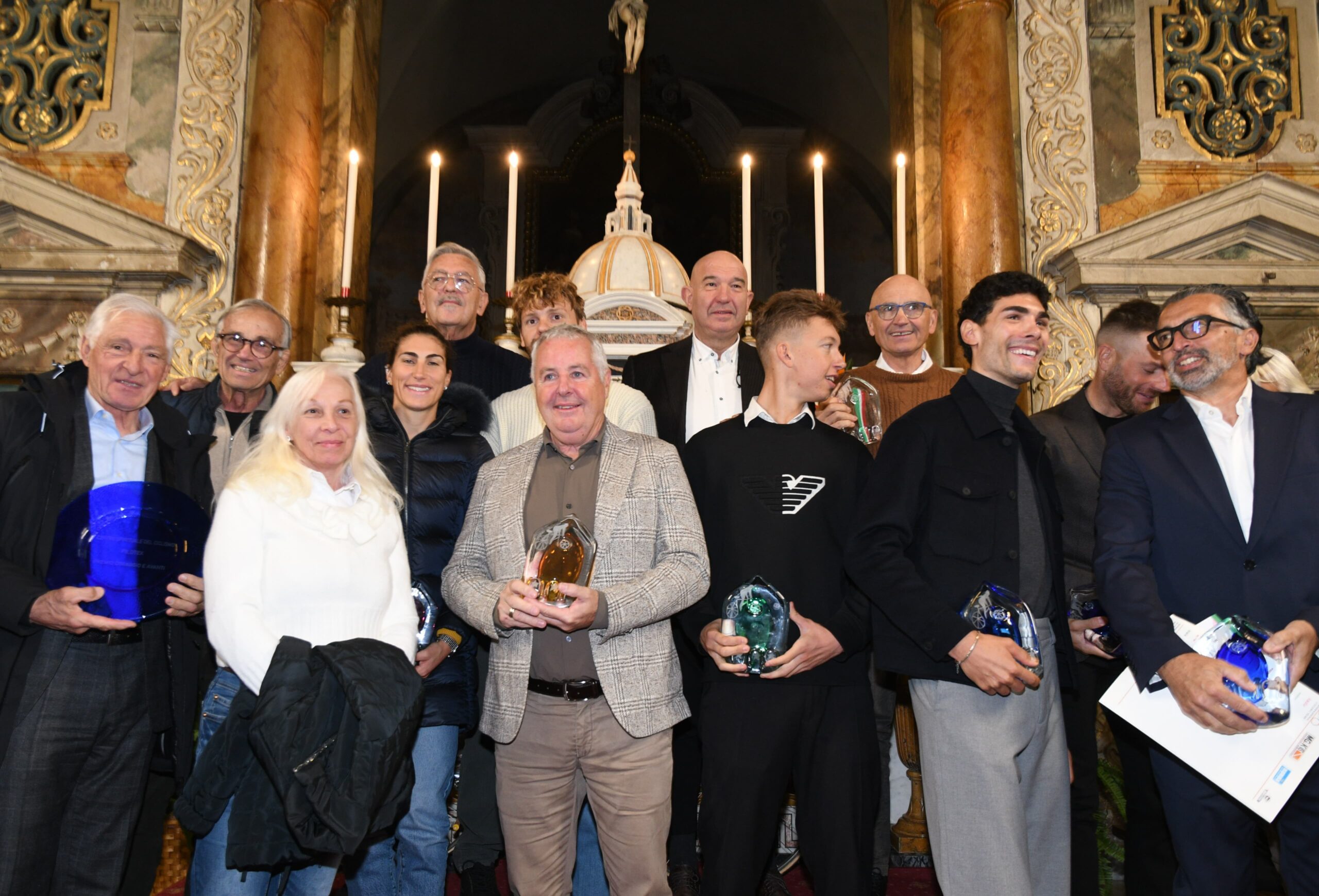 Sesto Fiorentino,22 novembre 2025 – Dopo la drammatica caduta al Giro di Polonia dalla quale per fortuna si è ristabilito dopo le non poche apprensioni tornando a salire nuovamente in bicicletta, non poteva che essere assegnato a Filippo Baroncini il 21° Premio Coraggio e Avanti, per la grande volontà espressa, la grinta, il guardare avanti per continuare l’attività. In maglia UAE Emirates si prepara alla stagione 2026 per tornare a mostrare la sua bravura con un programma ancora da definire. Intanto sulla collina di Santa Lucia alla Castellina, presso il Monastero dei Padri Carmelitani grazie all’ospitalità dei Padri Nicola e Francesco, sede del Centro Spirituale del Ciclismo nazionale e del Museo Filotex, è stato premiato tra gli applausi con il massimo riconoscimento della cerimonia organizzata dall’Associazione “La Famiglia”. Era presente anche il direttore sportivo della UAE Fabio Baldato premiato quale “Ammiraglio D’Oro”. Il Premio Gastone Nencini all’ex campione irlandese Stephen Roche uno dei tre atleti (gli altri due sono stati Merckx e Pogacar) capace di vincere Giro, Tour e mondiale nella stessa stagione. Quello denominato Azzurri d’Italia Memorial Alfredo Martini a Giambattista Baronchelli, al riconfermato c.t. degli Under 23 Marino Amadori il “Franco Ballerini”, quello Over 35 Memorial Edo Gelli a Damiano Caruso. Premi anche alla campionessa Elisa Balsamo, il Memorial Davide Faraoni per l’élite Marco Manenti (assente invece lo junior trentino Alessio Magagnotti), e per il paraciclismo Davide Plebani e Lorenzo Bernard. Riconoscimenti particolari, infine, al vicepresidente della Federazione Ciclistica Italiana Saverio Metti, per gli ex atleti del gruppo professionistico pratese Filotex a Francesco Moser e Piero Spinelli, a Maria Rosa Branca figlia dello storico meccanico della Filotex. della Nazionale Italiana e di altre squadre, Felice Branca. La premiazione si è tenuta in chiesa dopo la Santa Messa celebrata da Padre Raffaele Duranti con l’appassionato lavoro organizzativo svolto dal presidente del gruppo “La Famiglia” Luca Limberti, di Alessandro Troni, Giacinto Gelli, Francesco Cocci e dei loro collaboratori.