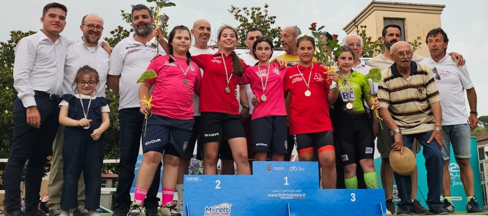 La Gimkana che ha aperto il pomeriggio era una prova del circuito laziale Abilità e Velocità A29 PLUS mentre la gara su strada era la quarta tappa del Baby Road Spring A29 PLUS. Dopo le animate sfide sul circuito cittadino di circa un chilometro, perfettamente controllato dallo staff locale, tutti sotto il palco per le premiazioni. A portare il saluto e il ringraziamento della città era presente il Sindaco di Fontana Liri Gianpio Sarracco che ha elogiato gli organizzatori per l’impegno messo in campo. Ospite d’onore l’ex prof Valerio Agnoli. Folta la rappresentanza FCI con il vicepresidente regionale Tony Vernile, il presidente del CP Frosinone Roberto Soave e i consiglieri Francesca Coppola e Sebastiano Retarvi. Per l’Asaci Evonacicli presenti Angelo Caringi e Angelo Courrier, presidente e vice del glorioso sodalizio isolano. Nel corso della cerimonia di premiazione sono stati assegnati anche i Premi speciali per le società. La Coppa “Cleto Lucchetti”, storico DS dell’AS Fontana Liri, è stata consegnata dal figlio Luigi al team Pirata Cosmetall Vangi Sama, società con maggior punteggio. La coppa “Alfredo Costrini “, braccio destro di Lucchetti alla guida dell’AS Fontana Liri, è stata consegnata da Aldo Proia alla società lucana Cicloteam Valnoce, proveniente da più lontano. E infine la coppa Enrico Proia, altro storico dirigente del sodalizio fontanese, è stata consegnata dalla figlia Laura alla società Abruzzese Pedale Teate, più numerosa dopo la società organizzatrice Asaci Evonacicli. Una targa ricordo da parte del Comitato Organizzatore è andata a Leonardo Di Stefano, originario di Fontana Liri, in gara nella categoria G6.