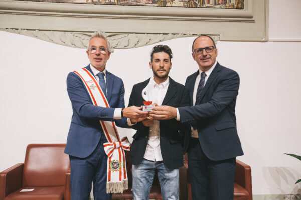 Cresciuto ciclisticamente all’Isola d’Elba (Procchio la sua località), anche se nato a Bologna, il campione italiano professionisti in linea ha ricevuto presso la sala Gonfalone del Consiglio regionale della Toscana in via Cavour a Firenze l’ambito riconoscimento.