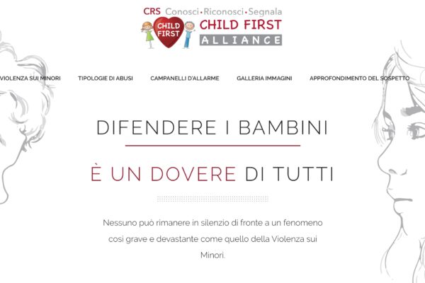 E' attivo da oggi il portale https://www.abusiminori.it/ dell’Associazione no profit Child First, che promuove e diffonde ogni attività nel settore della tutela dei minori in stato di disagio medico-sanitario, assistenziale, sociale e culturale, sostenendo iniziative ed eventi che mirino a sensibilizzare e informare l’opinione pubblica e ogni soggetto pubblico istituzionale o privato, sui temi della salvaguardia dei minori, con particolare riferimento alla prevenzione della Violenza sui Minori.
