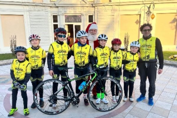 Anche il ciclismo baby ha voluto festeggiare con Babbo Natale l’imminente arrivo delle festività natalizie tanto care ai bambini. E lo ha fatto a Fiuggi grazie all’ASD Valerio Agnoli che ha organizzato la prima edizione della Gimkana di Babbo Natale che ha visto la partecipazione di tanti bambini in sella alla loro bici. L’evento si è svolto in Piazza Trento e Trieste nel cuore del centro storico della città delle terme con la regia di Maria Giovann Giorgilli e la fattiva collaborazione del Team Nereggi Coratti. Immancabile poi il valido supporto di Massimiliano Tucciarelli che anche in questa occasione ha offerto la sua infinita disponibilità. Il percorso della gimkana allestito da Tonino Giorgilli e Claudio Nereggi presentava diverse difficoltà che mettevano alla prova l’abilità dei partecipanti. Oltre ai ragazzi del Team Nereggi Coratti a contendersi la vittorie nelle varie categorie sono arrivati a Fiuggi anche i rappresentanti del Tibur Bike Team di Tivoli guidati dalla presidente Flavia Bernabei e quelli della Nuova Ciclisti Forano I Reccapezzati.