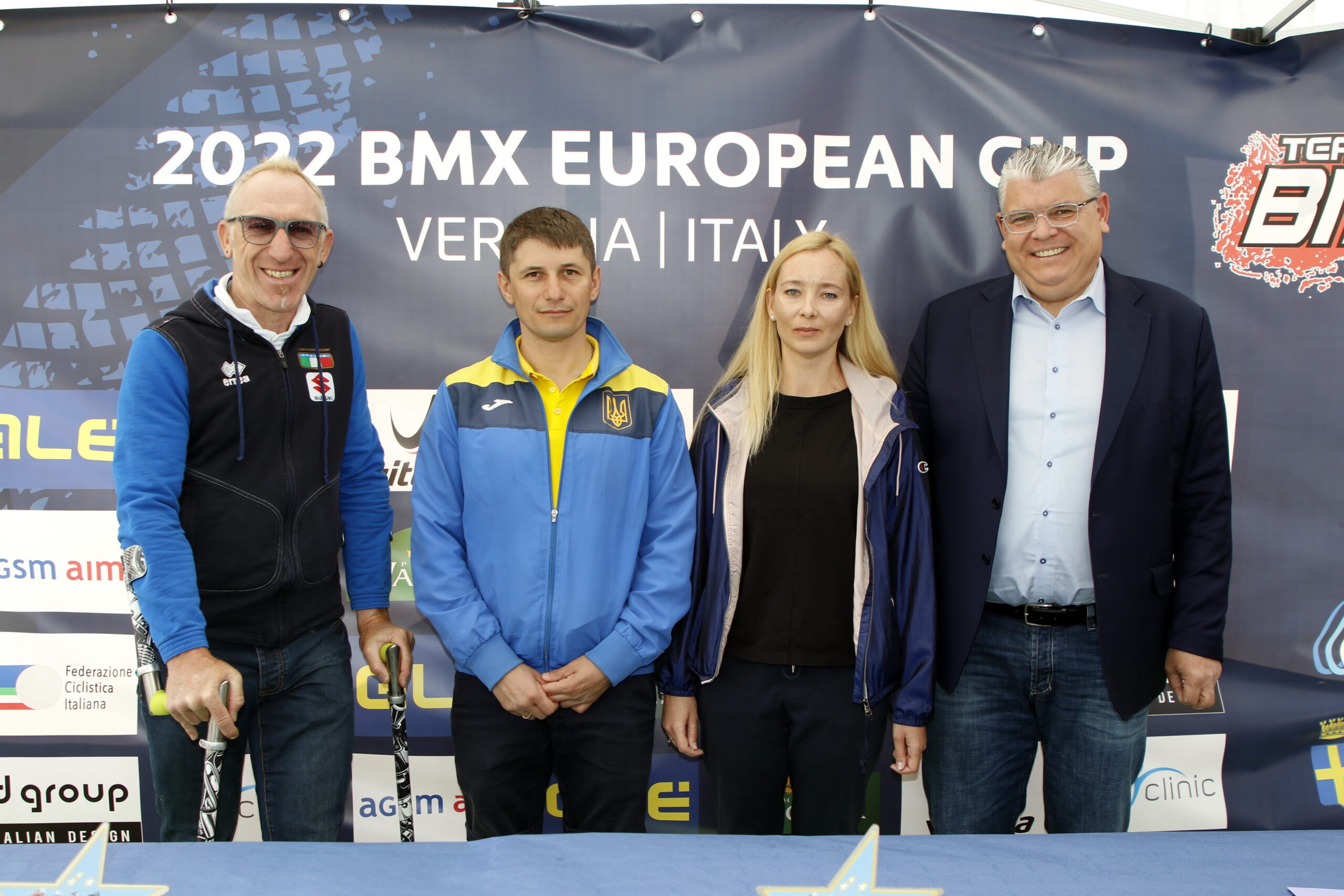 Nel corso della presentazione delle prime due prove veronesi della UEC European Cup BMX è intervenuto questa mattina anche il presidente UEC e vicepresidente UCI Enrico Della Casa. È stata l’occasione per lui anche di prendere visione in prima persona del bel progetto di solidarietà messo in atto dall’impianto veronese che sta ospitando alcuni atleti nazionali BMX dell’Ucraina insieme al team manager e coach Volodymyr Boychuk.