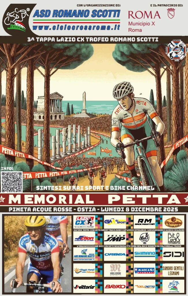 OSTIA LIDO, ROMA – A dodici mesi dalla prima edizione, il Memorial Egidio Petta di ciclocross si prepara a tornare protagonista nel cuore del litorale romano. Lunedì 8 dicembre, nella festa dell’Immacolata tanto cara ai romani, la Pineta Acque Rosse ospiterà la seconda edizione di una manifestazione che, già al debutto, ha saputo conquistare atleti, tecnici e appassionati, diventando appuntamento atteso per tutto il movimento ciclistico laziale, nonché terza tappa del Lazio CX Trofeo Romano Scotti con il patrocinio del Municipio Roma X.