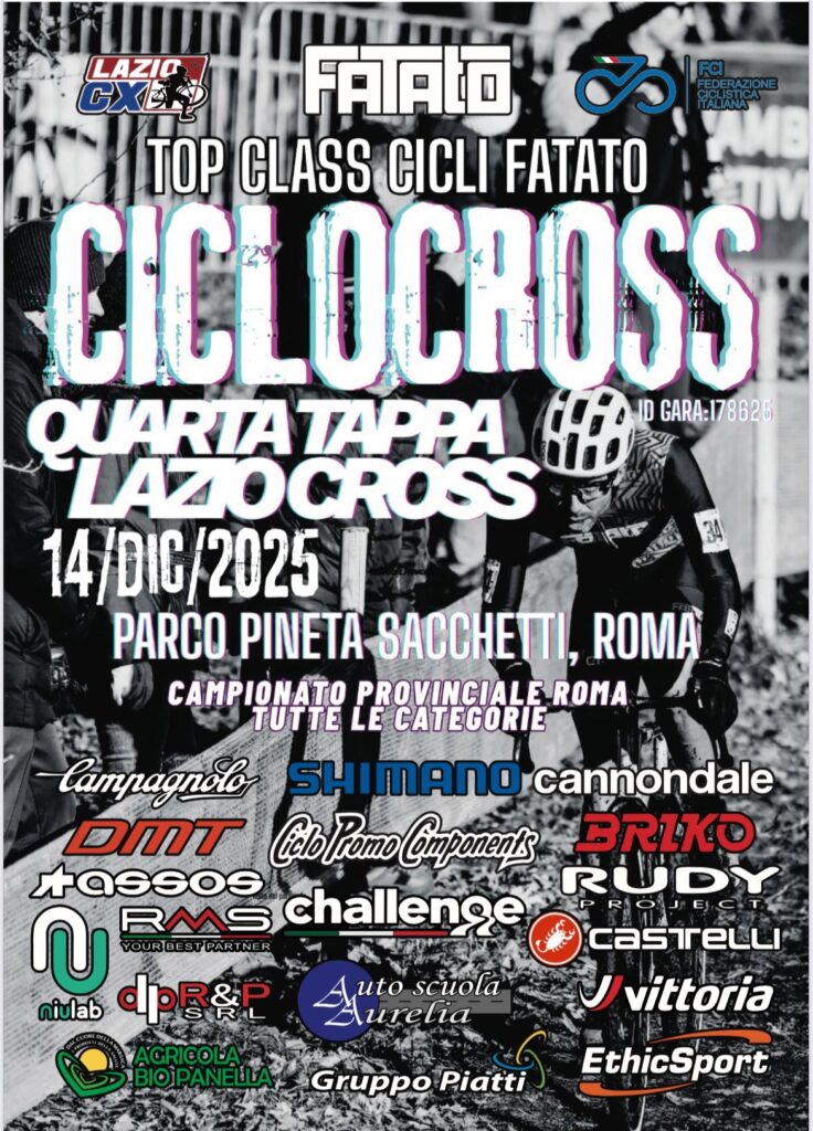Il programma del trofeo Cicli Fatato si aprirà alle 7.30 con la verifica tessere e la consegna dei numeri di gara. A seguire la consueta riunione tecnica che precederà la prima partenza prevista alle 9.15 con i ragazzi della G6 impegnati nella promozionale. Alle 9.50 saranno in gara Allievi ed Esordienti M/F mentre alle 10.40 sarà la volta di Juniores, JMT, Master da M4 a M9 e Donne tutte. Ultima gara della mattinata quella con Open e Master da ELMT a M3 prevista alle 11.40. Si passerà poi alla cerimonia di premiazione e poco dopo al Baby Trofeo Cicli Fatato riservato alla fascia Under 12. La prova di Short Track per Giovanissimi ed MPG prenderà il via alle 13.30 e sarà la festa finale di una giornata davvero ricca di gare. Sarà uno sforzo importante per gli organizzatori con la speranza che l’evento possa richiamare tanti sportivi romani per applaudire gli specialisti del ciclocross. Il Trofeo Cicli Fatato sarà la penultima prova del Lazio Cross Trofeo Romano Scotti che chiuderà l’edizione 2025 domenica 21 Dicembre a Rocca di Papa nel centro ippico dei Pratoni del Vivaro con il Trofeo Cycling Cafè.