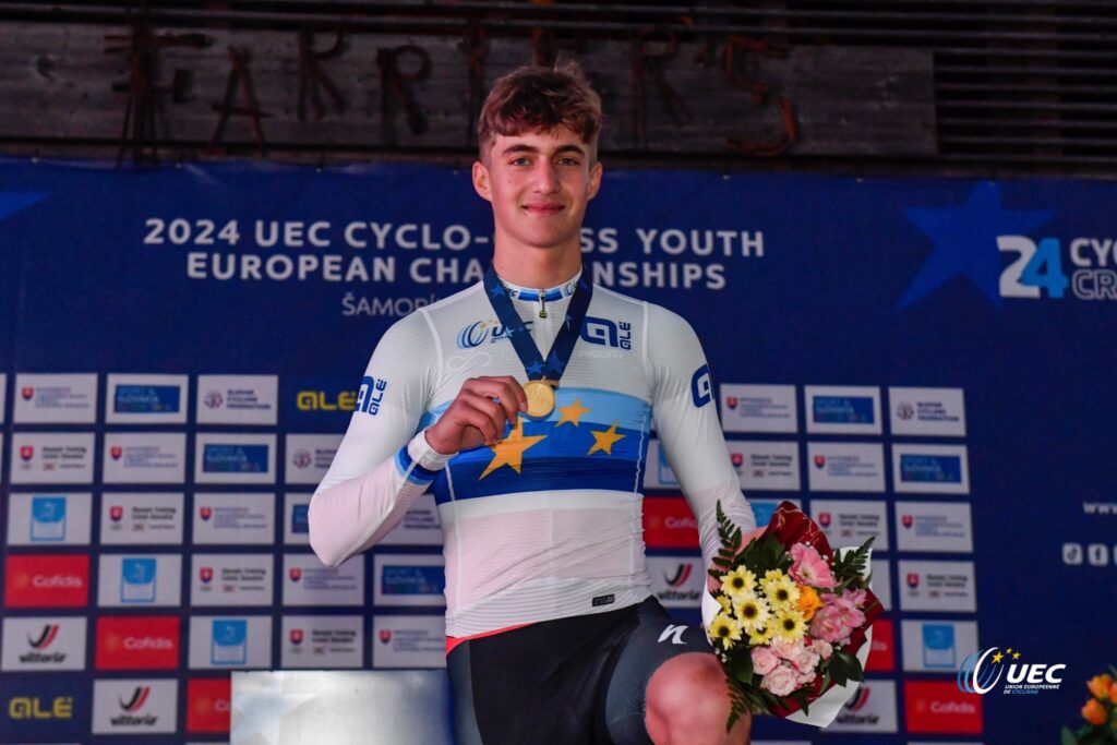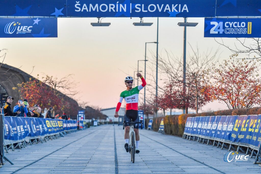 Per Tommaso Cingolani il 2024 è un anno veramente da incorniciare: campione italiano di ciclocross, un altro titolo di campione italiano nella prova a cronometro individuale e non si è lasciato sfuggire una luccicante medaglia d’oro ottenuta ai Campionati Europei Youth sotto l’egida dell’Unione Europea del Ciclismo in programma a Samorin, in Slovacchia, sulle sponde del Danubio.