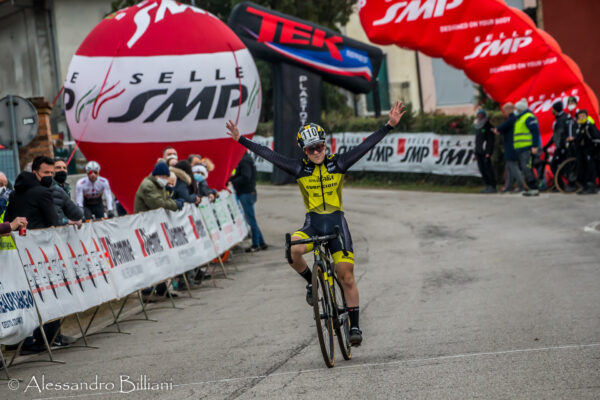 SAN FIOR – Martedì 28 dicembre più di 500 atleti, provenienti da ogni parte d’Italia, hanno regalato spettacolo nell’8° Trofeo Comune di San Fior, 4^ prova del Campionato Italiano per società. Organizzazione collaudata della Società Sportiva Sanfiorese, storico sodalizio presieduto da Gastone Martorel, che quest’anno ha scelto Castello Roganzuolo come nuova location di gara. Questa piccola graziosa frazione del comune di San Fior, adagiata sulle colline moreniche trevigiane, era già conosciuta agli appassionati delle due ruote del settore strada. Tracciato di gara nuovo e disegnato dalle esperte mani di Luigino Casagrande, Manuele Camerin e Riccardo Piccin. Misurava 2,7 chilometri e si sviluppava prevalentemente intorno alla Chiesa Monumentale dei Santi Pietro e Paolo, più conosciuta come la Pieve di Castello Roganzuolo, che sovrasta il paese offrendo una vista mozzafiato sulla pianura e sulle prealpi trevigiane. Contorno naturalistico eccezionale, con una prima sezione ricavata nel bosco, una seconda intorno ai vitigni e una terza, la più selettiva e tecnica, tra gli ulivi. Il nuovo percorso ha esaltato le prestazioni di tutti i partecipanti che hanno letteralmente “travolto” di commenti positivi il comitato organizzatore che nelle settimane scorse si è dato tanto da fare per allestire una manifestazione di altissimo livello.
