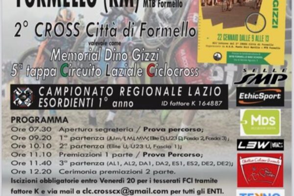 Ultimi ritocchi al circuito di Formello per l’edizione numero 2 del Cross Città di Formello, penultima tappa del Circuito Laziale Ciclocross. La gara è organizzata dalla Punto Bici Aprilia con il patrocinio del Comune di Formello e la collaborazione della MTB Formello, nelle persone di Sandro Bonafede e Marco Bruno, che ha messo a disposizione gli spazi del proprio campo scuola. Il Sindaco Gian Filippo Santi e l’assessore Roberta Bellotti hanno voluto confermare il sostegno dell’amministrazione comunale per un evento che sta entrando di diritto nella tradizione sportiva formellese. E sarà anche l’occasione per ricordare Dino Gizzi, uno degli storici ciclisti di Formello, a cui parenti ed amici hanno voluto dedicare la gara ed una mostra fotografica.