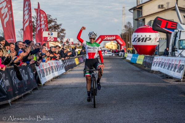 08-12-2022 – Oggi a Faè di Oderzo abbiamo finalmente capito quanto ci era mancato il pubblico delle grandi occasioni. Borgo Barattin non ha tradito le attese. Nel pomeriggio questa piccola frazione nel cuore della Marca Trevigiana si è riempita, ora dopo ora, di pubblico. Grandi, piccoli, appassionati e non, tutti con la stessa voglia di assistere al grande spettacolo internazionale del ciclocross. Il pubblico delle grandi occasioni è stato ripagato a pieno titolo da una serie di gare dall’altissimo valore tecnico e dalla grandissima partecipazione. Più di 550 atleti con il meglio di ciò che offre il panorama azzurro e una agguerrita pattuglia di corridori stranieri. Faè di Oderzo ha inoltre pareggiato il conto con il meteo. Dopo una edizione 2021 fredda e bagnata dall’inizio alla fine, quest’anno un tiepido sole ha fatto da contorno a questa classica monumento del ciclocross, 4^ tappa del Master Cross Selle Smp dopo le competizioni di Brugherio, Castello di Serravalle e Vittorio Veneto. La prova odierna era anche inserita nel Campionato Italiano per società.