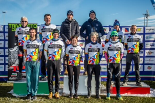 Fiume Veneto (Pn) – 12-12-2021 – Oggi più di 300 atleti si sono dati battaglia sull’insidioso fango del Ciclocross Città di Fiume Veneto, 8^ tappa del Trofeo Triveneto di ciclocross. Il Gruppo ciclistico Bannia non ha trascurato nessun dettaglio. Ottima logistica presso gli impianti sportivi e un tracciato che solo all’apparenza sembrava facile. I numerosi fossati e il fango “colloso” lo hanno reso particolarmente selettivo, ma ugualmente apprezzato dai partecipanti. Scivolate, cadute, capovolgimenti di gara sono stati gli ingredienti chiave di una giornata che è stata baciata dal sole e che ha assegnato anche i titoli del Campionato Triveneto.