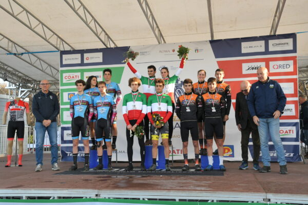 Nella prima delle due giornate dei Campionati italiani Ciclocross 2023, sul veloce percorso del Camping Village Roma Capitol, al termine delle corse Master è andato in scena un primo gustoso assaggio delle categorie agonistiche: la Team Relay. Undici squadre (alcune società formavano due formazioni al via) con quattro staffettisti ciascuna, in prevalenza tre uomini e una donna: un giro a testa e tanta adrenalina fino alla tornata conclusiva.