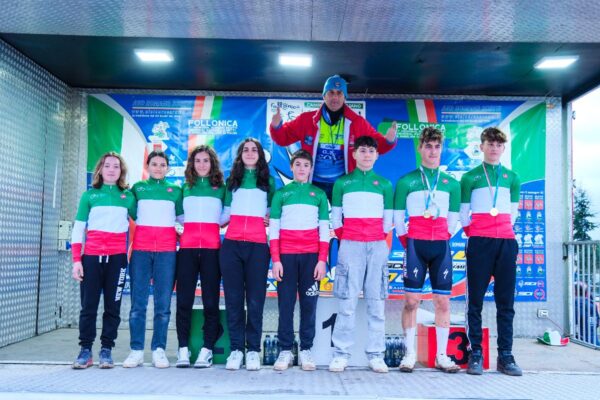 Nel pomeriggio ha gareggiato la categoria allievi con le 4 prove previste. La prima a salire sul gradino più alto del podio l’allieva veneta del 1° anno Matilde Carretta del G.S. Mosole. Una quindicenne bravissima che vinse nel ciclocross anche il titolo italiano esordienti 2° anno nel 2024, campionessa italiana nella prova in linea 2023, e che lo scorso anno ha vinto due titoli italiani anche su pista a confermare qualità e doti di atleta completa. Al secondo posto a 55” la lombarda Matilde Anselmi (Salus Seregno) e terza la friulana Rebecca Anzisi (Jam’s Bike Team Buja) a 1’31”. In quarta posizione la Maifrè, quinta la Masini, con 35 partenti. Nella prova del 2° anno il titolo italiano per Nicole Righetto (Team Velociraptors) sorella di Irene che in precedenza si era laureata campionessa italiana esordienti 2° anno. La brillante veneta è al quarto titolo italiano consecutivo; in Toscana ha avuto la meglio su Sara Peruta (Salus Seregno) e Maria Chiara Signorelli (Beltrami TSA), quindi a seguire Zipoli e Cafueri. Ultime due gare quelle degli allievi. Nel 1° anno appassionante duello fino alla fine tra il valdostano Michel Careri della Salus Seregno e il friulano Alessio Borile (DP 66). Careri alla fine riusciva ad avere la meglio nei confronti del bravo antagonista, mentre la medaglia di bronzo era per il toscano Riccardo Frosini, atleta aretino portacolori del G.C. Montegrappa. La quarta e quinta piazza per D’Aiuto e Gualtieri. L’ultima gara della giornata conclusiva che ha visto impegnati 476 concorrenti, ha visto il trionfo dei gemelli marchigiani Tommaso e Filippo Cingolani del Team Cingolani. La maglia tricolore sulle spalle di Tommaso grande protagonista della stagione e medaglia d’argento per l’altrettanto bravo Filippo finito ad appena 5 secondi. Il terzo posto con lo stesso ritardo invece, al pugliese del G.S. Il Pirata Vangi Sama Ricambi, Francesco Dell’Olio. A chiudere le prime posizioni quarto Bosio e quinto Vaglio.