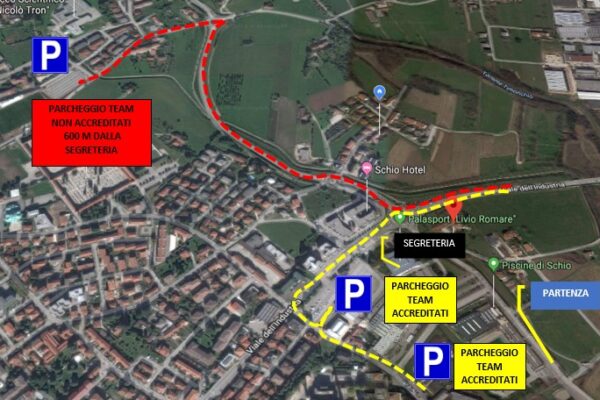 A seguito delle numerose richieste pervenute in queste ultime ore, e considerato che l’Area Team dislocata in prossimità del campo gara, con la presenza di oltre 145 gruppi sportivi già accreditati, è attualmente al completo, gli organizzatori, dopo il confronto odierno avuto con i competenti Dirigenti preposti dell’Amministrazione comunale scledense, informano le società ed i Gruppi Sportivi non accreditati, che per loro è stata identificata un’area libera in prossimità dello stadio del Rugby “Nelson Mandela” ubicata a circa 1300 metri dalla “Segreteria di gara”.