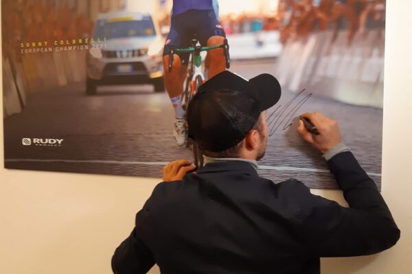 Dopo aver visitato l’azienda trevigiana di occhiali e caschi, Colbrelli si è recato al concept store Rudy Project Ottica 2M di Montebelluna dove ha lanciato un’asta di beneficenza in cui in palio ci sono una versione speciale, non in commercio, di casco e occhiali con la livrea di Campione Europeo. Il ricavato verrà devoluto a Croce Rossa Italiana – Comitato Regionale Veneto che lo utilizzerà per le attività di sensibilizzazione e promozione della cultura della sicurezza stradale. Durante l’evento, per presentare il progetto sono intervenuti anche Cristiano e Simone Barbazza, presidente e direttore marketing di Rudy Project, ed Elisa Tinello, consigliere regionale del Comitato veneto di Croce Rossa Italiana.
