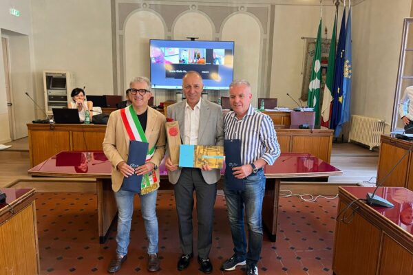 Nella foto il presidente Cordiano Dagnoni con il sindaco di Darfo Boario Dario Colossi e Ezio Maffi, organizzatore della rassegna tricolore.