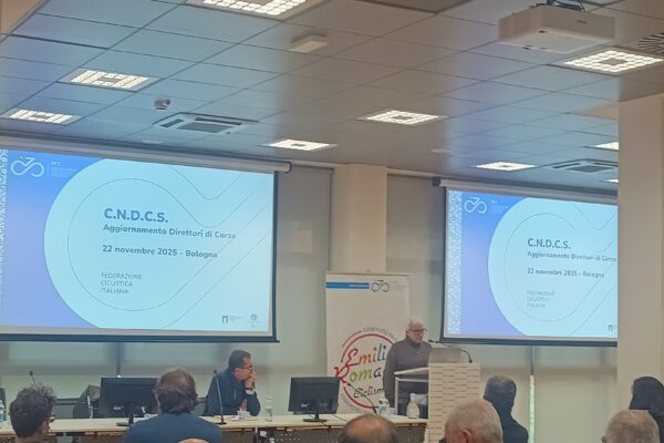 Bologna, 24 novembre — Presso la sede regionale della BCC Emilbanca si è svolto l’aggiornamento annuale dei Direttori di Corsa dell’Emilia-Romagna, un appuntamento che si è distinto per l’elevata qualità organizzativa, la concretezza dei contenuti e il livello dei relatori. All’incontro hanno preso parte anche i direttori di corsa delle Marche, insieme ai responsabili dei gruppi motostaffette e ASTC, a conferma della volontà di lavorare in sinergia su tutto ciò che riguarda il Comparto Sicurezza. Dopo il saluto istituzionale del dott. Assuero Zampini, Consigliere di BCC Emilbanca, il Presidente del CRER Pierluigi De Vitis ha aperto i lavori sottolineando il buon livello organizzativo espresso nelle gare regionali e, al contempo, la necessità di una crescita ulteriore nella progettazione degli eventi e nel dialogo con enti ed istituzioni. Il responsabile della CRDCS, Nicola Dalmonte, ha offerto una puntuale analisi sullo stato della categoria, evidenziando meriti e criticità, tra cui il crescente numero di neutralizzazioni di gara e la necessità di una più condivisa assunzione di responsabilità nel governo del movimento. Molto apprezzato l’intervento del presidente della CNDCS, Enrico Fontana, che ha illustrato le principali iniziative in corso: la ripresa del dialogo tra commissioni, la collaborazione con il Servizio Polizia Stradale, le nuove proposte sulla sicurezza, la ridefinizione del ruolo del Direttore di Corsa e la revisione dei percorsi formativi. Fontana ha poi approfondito il nuovo articolo 9 del Codice della Strada, illustrando le novità relative alle procedure autorizzative, alle competenze di prefetti e sindaci e alle semplificazioni introdotte.