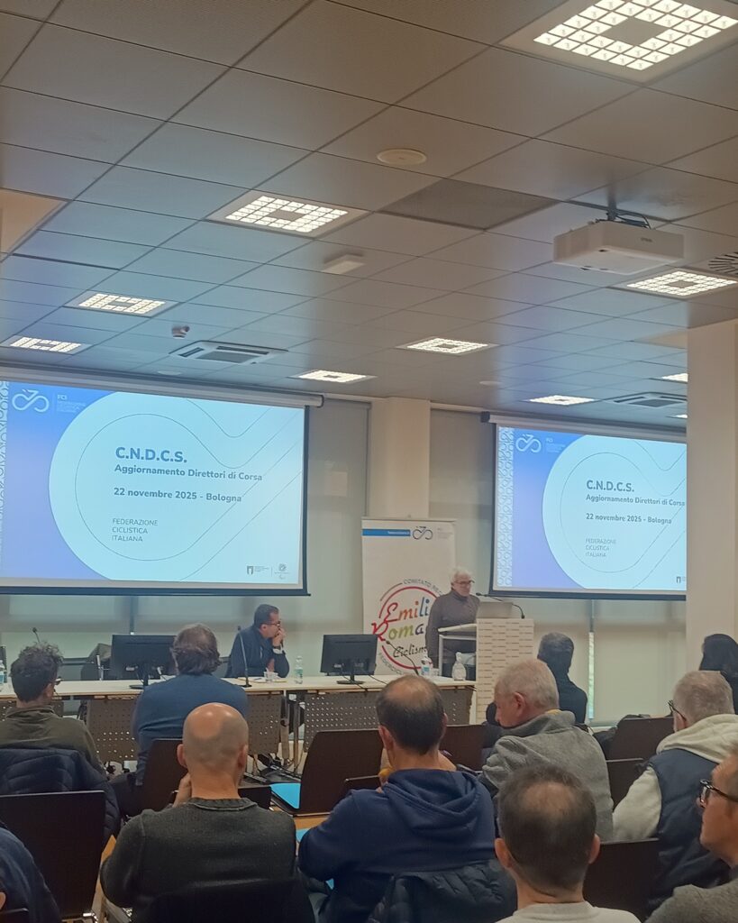 Bologna, 24 novembre — Presso la sede regionale della BCC Emilbanca si è svolto l’aggiornamento annuale dei Direttori di Corsa dell’Emilia-Romagna, un appuntamento che si è distinto per l’elevata qualità organizzativa, la concretezza dei contenuti e il livello dei relatori. All’incontro hanno preso parte anche i direttori di corsa delle Marche, insieme ai responsabili dei gruppi motostaffette e ASTC, a conferma della volontà di lavorare in sinergia su tutto ciò che riguarda il Comparto Sicurezza. Dopo il saluto istituzionale del dott. Assuero Zampini, Consigliere di BCC Emilbanca, il Presidente del CRER Pierluigi De Vitis ha aperto i lavori sottolineando il buon livello organizzativo espresso nelle gare regionali e, al contempo, la necessità di una crescita ulteriore nella progettazione degli eventi e nel dialogo con enti ed istituzioni. Il responsabile della CRDCS, Nicola Dalmonte, ha offerto una puntuale analisi sullo stato della categoria, evidenziando meriti e criticità, tra cui il crescente numero di neutralizzazioni di gara e la necessità di una più condivisa assunzione di responsabilità nel governo del movimento. Molto apprezzato l’intervento del presidente della CNDCS, Enrico Fontana, che ha illustrato le principali iniziative in corso: la ripresa del dialogo tra commissioni, la collaborazione con il Servizio Polizia Stradale, le nuove proposte sulla sicurezza, la ridefinizione del ruolo del Direttore di Corsa e la revisione dei percorsi formativi. Fontana ha poi approfondito il nuovo articolo 9 del Codice della Strada, illustrando le novità relative alle procedure autorizzative, alle competenze di prefetti e sindaci e alle semplificazioni introdotte.