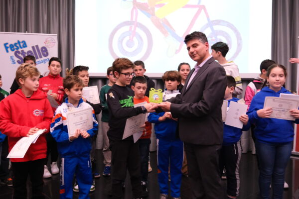 Ad anticipare l’emozione del premio Fair Play, il singolare riconoscimento “Piccolo Principe” ed “Aviatore”. Il primo e` stato assegnato ai bambini piu` piccoli tesserati per l’Emilia Romagna. Ha commosso, infatti, la voce sottile e tenera di Mario Zuena e Ida Fabbri che per tutto il 2022 hanno pedalato rispettivamente nel Pedale Riminese e nel Bidente Asd alla sola eta` di quattro anni. Il secondo, invece, e` finito nelle mani di Arrigo Vanzolini, presidente onorario del GC Fausto Coppi che a novant’anni continua a pedalare in sella alla sua bicicletta. Tutti in piedi, poi, per “lo zio” del ciclismo italiano: e` stato, infatti, Bruno Reverberi a ricevere il riconoscimento piu` ambito della Festa delle Stelle: il premio Fair Play. Dando voce ad una storia antica e presente, Reverberi ha messo insieme i pezzi di un progetto che continua ad essere straordinariamente attuale. E ancora, sotto le luci dei riflettori, l’Asd Cooperatori che con una nutrita schiera di giovanissimi ha ricevuto il doppio premio per la vittoria ai meeting regionali su strada e fuoristrada. Sono state anche la “Nuova Ciclistica Placci”, l’Appenninobike, l’After Skull e l’US Formiginese a ricevere la piantina solidale dello IOR quali “organizzatori dell’anno”. Le prime tre, infatti, hanno editato nel 2022 campionati italiani relativamente alle donne elite strada, all’enduro e al Pump Track, mentre l’ultima e` risultata essere la societa` con il piu` alto numero di gare organizzate.