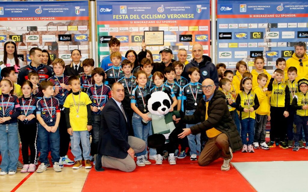 Le maglie iridate di Elia Viviani (eliminazione) e Alessio Magagnotti (inseguimento individuale e a squadre juniores), il titolo europeo dello stesso atleta trentino con il quartetto, 26 titoli italiani e 20 regionali veneti (con 16 atleti) e 9 atleti convocati in azzurro dicono a sufficienza dell’ottimo stato di salute del ciclismo veronese. I risultati sono rilevanti anche perché ottenuti su strada e su pista, nel bmx, nel mountain bike e nel ciclocross, insomma in tutte le discipline del ciclismo. “Il merito va alle 70 società affiliate con 3400 tesserati, capaci di mettere in cantiere più di 150 giornate gare” sottolinea, in apertura della 39^ Festa del ciclismo, tradizionale appuntamento dedicato alle premiazione di atleti, società, dirigenti, tecnici, il presidente Diego Zoccatelli, allontanando l’avvilimento per quanto, in una trasmissione su La7, sia stato detto che il velodromo di Pescantina è obsoleto e che ogni finanziamento pubblico debba essere riservato al velodromo coperto di Spresiano.