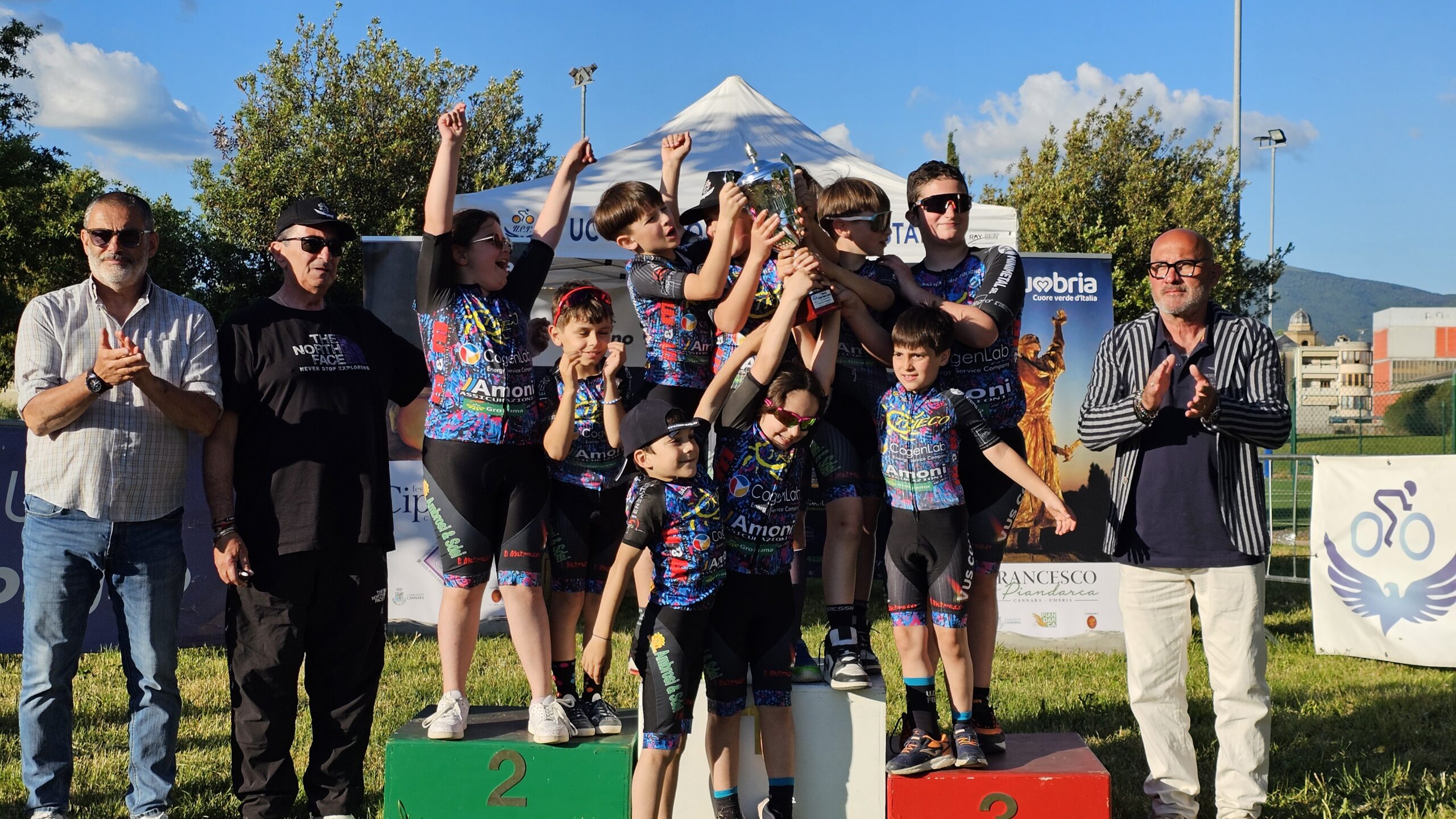 I protagonisti dell’evento sono stati in particolare 51 corridori in erba provenienti da Toscana e Umbria, con questi ultimi e i rispettivi team in lizza anche per i punti del Trofeo Grifoflex 2025, circuito regionale dedicato ai Giovanissimi giunto a Cannara alla terza delle sue nove manche complessive. L’inedita location si è rivelata estremamente funzionale per le competizioni di categoria, grazie anche a un circuito, di 750 m a tornata, piuttosto nervoso a livello planimetrico, tra curve tecniche e continui rilanci. Un tracciato che ha prodotto non a caso delle gare molto dinamiche e divertenti, favorendo anche attacchi a lunga gittata come quello di Massimo Peretti (GS Avis Bike Amelia), mattatore della batteria regina di giornata dei G6 con una cavalcata solitaria partita sin dai primissimi giri. A livello di squadra festa nella festa per il Foligno Cycling Team, che coi suoi 16 elementi al via si è imposto nella graduatoria a partecipanti. Grande soddisfazione pure per i padroni di casa dell’UC Foligno Start a cui è andato invece, grazie anche alle vittorie individuali siglate da Giulio Gareggia (G4) ed Emma Palazzo (G3), il trofeo della classifica a punti. Premio speciale all’insegna dei prodotti tipici di Cannara, con le lenticchie e la caratteristica cipolla rossa a farla da padroni, pure per il Team Valdinievole (come società proveniente da più lontano) e il CT Massa Martana (miglior punteggio in rapporto ai partecipanti), mentre un pacco omaggio ricco di specialità locali è stato riservato, al di là del risultato conseguito, a tutti i singoli corridori presenti ai nastri di partenza.