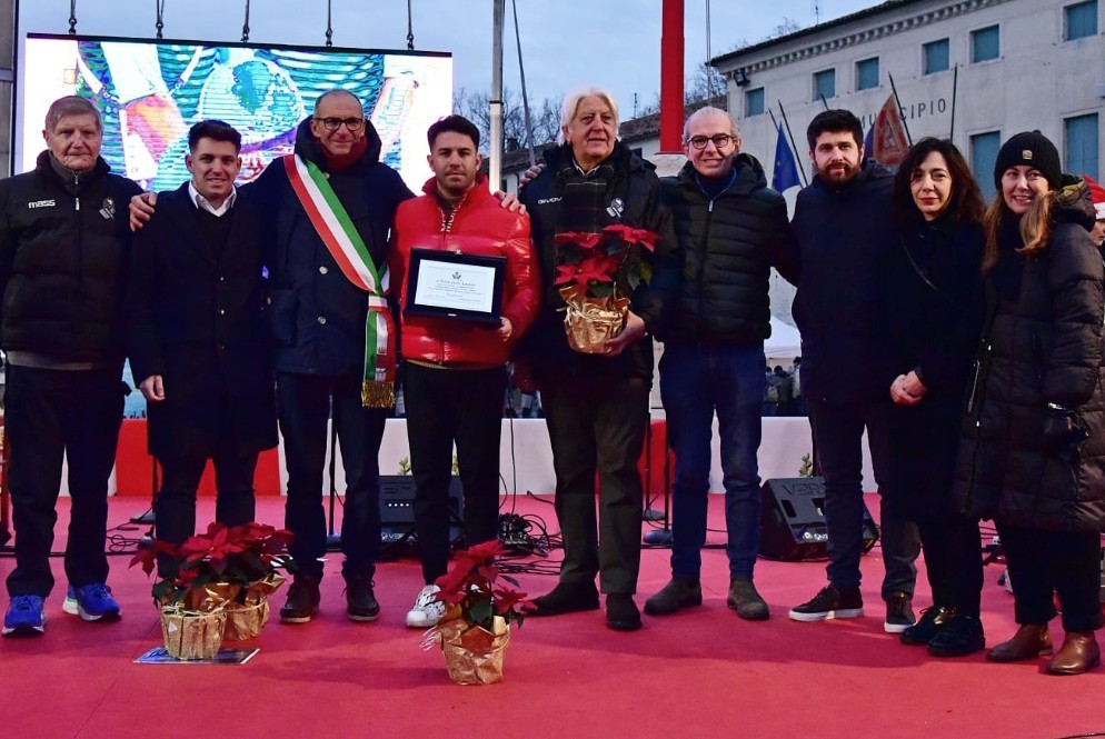 Il Sindaco Tiziano Baggio, la Vicesindaco Maria Giovanna Boldrin e il Consigliere incaricato alle attività sportive, Damiamo Volpato, hanno accolto sul palco Lamon e, in rappresentanza di Dei Rossi impegnato con le gare in Canada, suo padre Giovanni e l’allenatore Vittorio Carrara. Gli Amministratori hanno consegnato i riconoscimenti ai due azzurri per i risultati ottenuti nell’impegnativa avventura olimpica, che ha visto Lamon e Dei Rossi confrontarsi con i migliori atleti di tutto il mondo.