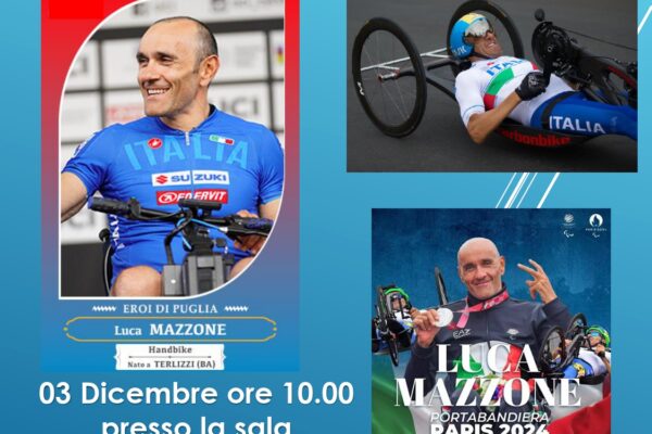Attraverso l’iniziativa “I Campioni si raccontano”, il pluridecorato handbiker Luca Mazzone, incontra a Matera gli studenti dell’Istituto Comprensivo Bramante-Torraca per raccontare delle sue straordinarie imprese compiute in giro per il mondo con il paraciclismo, dopo l’ultima partecipazione ai Giochi Paralimpici di Parigi 2024 in cui ha avuto il grande onore di essere il portabandiera di tutta la squadra azzurra. Pugliese di Terlizzi, in provincia di Bari, classe 1971, Luca Mazzone è uno dei più grandi atleti nella storia del movimento paralimpico italiano con medaglie conquistate nel nuoto prima di dedicarsi al ciclismo dove ha ampliato la sua collezione di medaglie. L’appuntamento con Mazzone è fissato alle 10:00 presso l’istituto scolastico in via Bramante (al civico 6), in presenza del vice presidente vicario della Federazione Ciclistica Italiana Carmine Acquasanta, delle autorità sportive della delegazione regionale FCI Basilicata e provinciale di Matera.