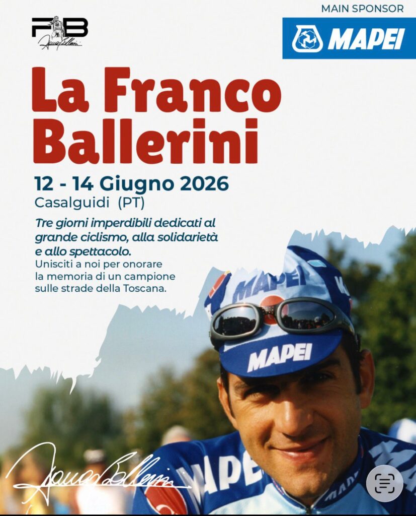 L’evento sarà un weekend dedicato alla memoria dell’indimenticato atleta e alla promozione dei valori dello sport, attraverso un calendario che unisce solidarietà e territorio. L’iniziativa prenderà il via con una cena di beneficenza presso l’Ospedale Meyer di Firenze, con ospiti e protagonisti delle due ruote, a sostengo di una realtà simbolo d’eccellenza. A seguire, una giornata dedicata alla corsa giovanissimi e alla prima Ciclostorica organizzata dall’Associazione. La tre giorni si concluderà domenica 14 giugno 2026 con la 1^ Granfondo “La Franco Ballerini”, che attraverserà i luoghi toscani dove Franco era solito allenarsi.