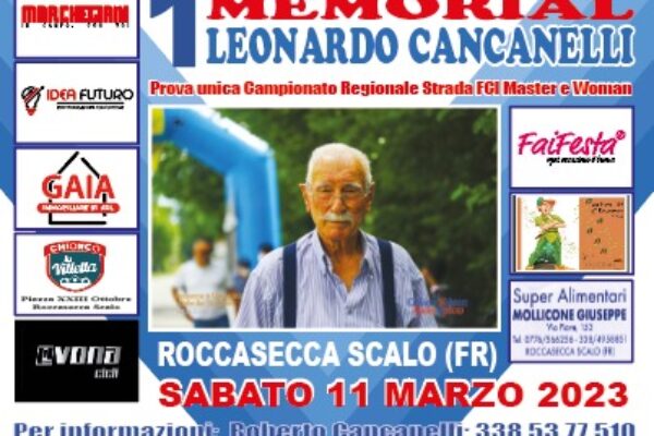 Sabato 11 Marzo si correrà a Roccasecca in Ciociaria per la prima edizione del Memorial Leonardo Cancanelli, prova valida per il Campionato Regionale Master Strada Fci.
