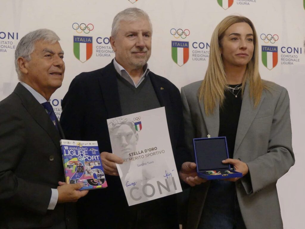 Per i suoi 35 anni trascorsi come dirigente nel ciclismo dei quali venti alla guida del Comitato Regionale Ligure della Federciclismo, Sandro Tuvo ha ricevuto nel Salone di Rappresentanza del Comune di Genova, alla presenza del Sindaco Silvia Salis, dell’Assessore Regionale allo Sport Simona Ferro, del Presidente Regionale Ligure del Coni Antonio Micillo, la Stella D’Oro del CONI al merito sportivo. Sandro Tuvo è stato organizzatore di squadre e gare giovanili, di Campionati Regionali, Nazionali e Internazionali; di Campionati Italiani Strada e Fuoristrada culminati quest’anno con l’Europeo di Mountain Bike Marathon 2025. “Ringrazio il CONI per il premio che rappresenta per me una tappa importante – ha dichiarato Tuvo dopo aver ricevuto il premio – oltre a tutti i miei collaboratori e tesserati del Genoa Bike, perché senza di loro non avremmo raggiunto gli obbiettivi che mi ero e che ci eravamo prefissati”.