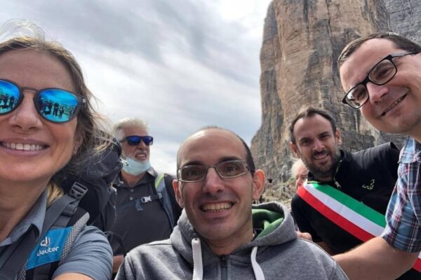 Per la prima volta nella sua vita è andato alle Tre Cime di Lavaredo su due ruote percorrendo il sentiero che dal rifugio omonimo sale fino alla forcella Lavaredo trainato su una piattaforma mobile su quattro ruote, tirata da sei guide dei volontari del Cai, Club Alpino Italiano, e alcuni soci del soccorso alpino. Un obiettivo che era già prefissato da tempo e che era diventato realtà il 4 settembre 2020: tutto questo era stato possibile grazie agli amici della scuola di Teologia, che aveva frequentato dopo il lavoro, e ai compagni di corso tra cui Aldo Solimbergo, presidente del Lions Club Treviso Sile.