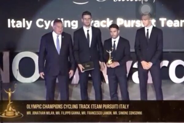 Sul palco ha preso la parole Filippo Ganna che si è così espresso: “È un riconoscimento molto importante per noi, siamo come una famiglia. Ora ci possiamo rilassare perché non è facile concentrarsi per l’evento più importante per 5 anni. Pensate che siamo sotto pressione sempre, ad esempio Simone Consonni oggi non c’è perché sta lottando ancora per delle medaglie ai Campionati Mondiali a Roubaix. Ci siamo impegnati al massimo per raggiungere gli obiettivi e si possono vedere i risultati”.