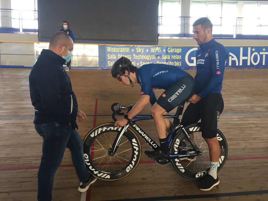 Immagazzinate le regole fondamentali, preso confidenza con la pista grazie ad alcuni giri sull’anello e soprattutto con il mezzo (“le nostre bici sono piccole. Le ruote sono piccole. Abbiamo un freno ma… lo abbiamo!” – parola di alcuni ragazzi a battesimo sul velodromo) gli azzurri testano le loro “abilità” con le prove di partenza. Cinque, quattro, tre, due, uno e alè! Con questo incitamento, e solo dopo aver ascoltato Villa e osservato la Nazionale Pista all’opera, i piloti si sono lanciati e.. “ci hanno preso gusto” afferma Lupi. Tanto da cimentarsi anche nel test cronometrico lungo un giro