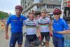 Nella foto: gli azzurri (assente Boscaro) con il tecnico Masotti subito dopo la vittoria di Quaranta, che indossa la maglia di leader della classifica a punti; sotto: l’arrivo di Quaranta (foto Fepaci Prensa)