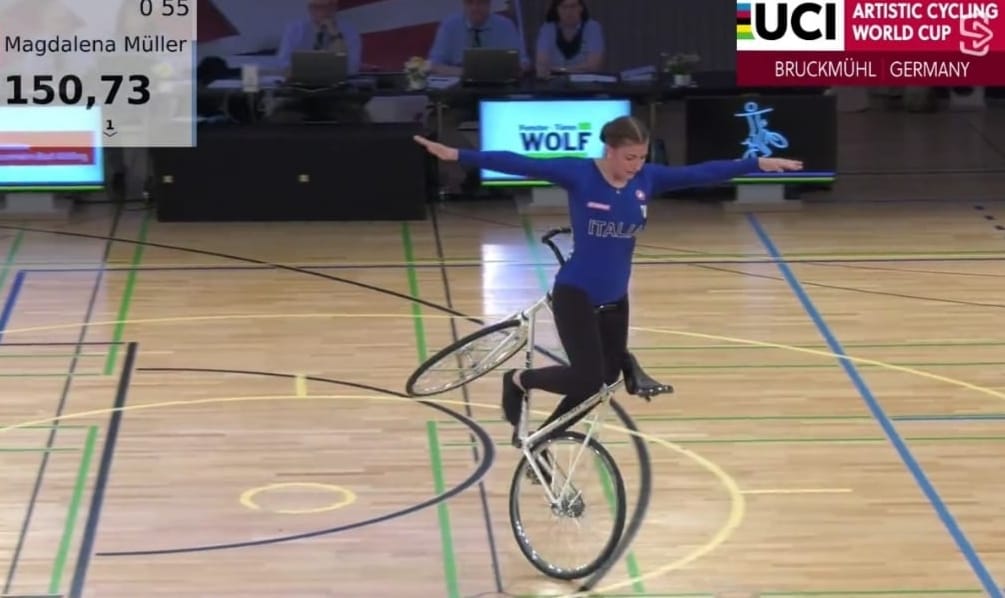 Nella seconda prova di Coppa del Mondo di ciclismo indoor che si è svolta sabato 27 maggio a Bruckmühl, in Germania, l’azzurra Magdalena Yukiko Muller ha chiuso al settimo posto. Il CT Luigi Bielli: “Peccato per il piazzamento di Magdalena, frutto di un errore nella fase iniziale che ha compromesso tutta la prestazione. Nonostante questo possiamo essere soddisfatti, visto che con l’approssimarsi dei Mondiali il livello si è alzato notevolmente e nella prova di domenica erano presenti i migliori interpreti della specialità. Voglio ricordare che Magdalena nella prima prova di Coppa ha sfiorato il podio, chiudendo al quarto posto a pochi decimi dal bronzo a dimostrazione che il lavoro di questi mesi sta pagando. Negli allenamenti pregara le sue prove rasentano la perfezione, questo vuol dire che sta crescendo, anche alla luce dell’inserimento di nuove difficoltà di punteggio che sta portando in gara.”