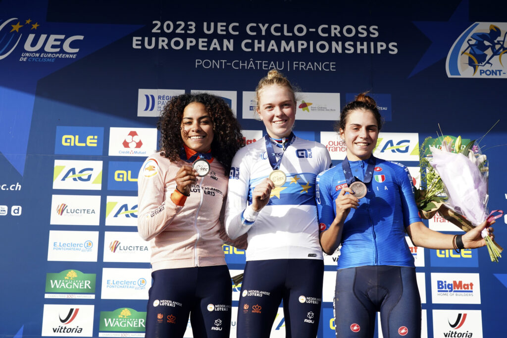 PONT-CHÂTEAU – La 120° medaglia della stagione per il ciclismo azzurro la conquista Sara Casasola, terza nel campionato europeo di Pont-Château. La friulana di 24 anni (a fine novembre) chiude a 1’56” dalla vincitrice, l’olandese Fem Van Empel, che ha superato di oltre 1’ anche la connazionale Alvarado, confermando il titolo conquistato lo scorso anno.