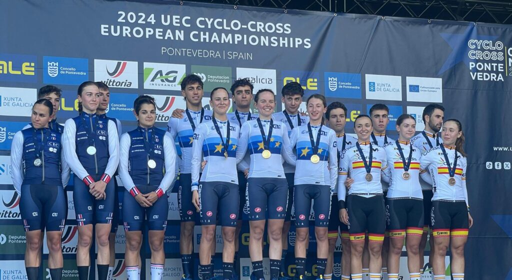 PONTEVEDRA (SPA) – Il Team Relay del ciclocross si è laureato campione d’Europa a Pontevedra (Spagna) davanti alla Francia e ai padroni di casa. Il sestetto azzurro, composto da Federico Ceolin (Elite), Mattia Agostinacchio (Junior), Lucia Bramati (U23), Giorgia Pellizotti (Junior), Francesca Baroni (Elite) e Filippo Agostinacchio (U23) ha vinto con il tempo di 40’50”, con 11″ di vantaggio sui transalpini.