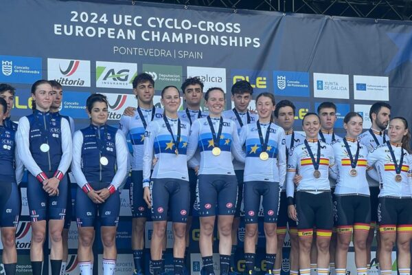 PONTEVEDRA (SPA) – Il Team Relay del ciclocross si è laureato campione d’Europa a Pontevedra (Spagna) davanti alla Francia e ai padroni di casa. Il sestetto azzurro, composto da Federico Ceolin (Elite), Mattia Agostinacchio (Junior), Lucia Bramati (U23), Giorgia Pellizotti (Junior), Francesca Baroni (Elite) e Filippo Agostinacchio (U23) ha vinto con il tempo di 40’50”, con 11″ di vantaggio sui transalpini.