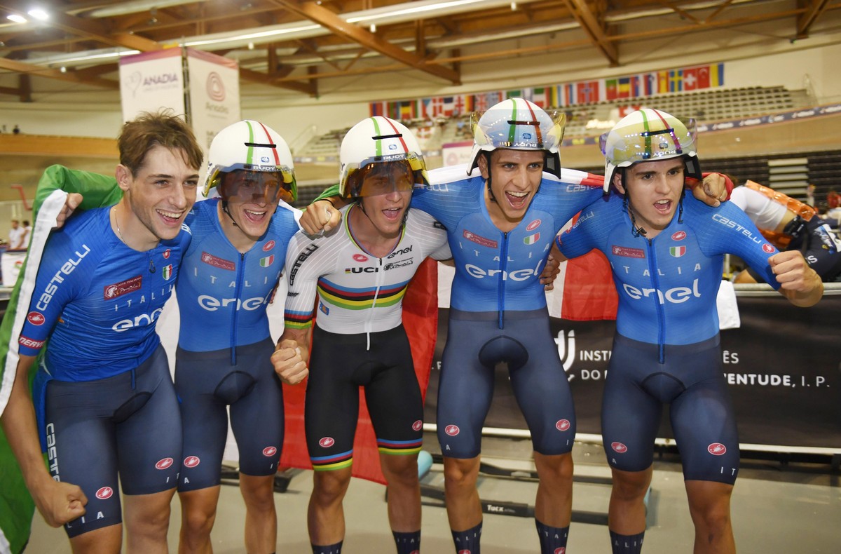 Il primo oro di giornata arriva con l’inseguimento a squadre maschile juniores. Francesco Cornacchini, Alessio Magagnotti, Riccardo Colombo e Francesco Matteoli – con Ruben Ferrari in pista nelle qualificazioni – firmano una prova impeccabile. In finale superano la Gran Bretagna in 3’55”635, lasciandosi alle spalle il quartetto composto da Hinds, Gravelle, Hobbs, Thompson, che chiude in 3’56”843. Bronzo alla Germania, che ha la meglio sulla Svizzera. Per il quartetto azzurro si tratta di una conferma ai massimi livelli: lo stesso gruppo aveva conquistato l’oro anche un anno fa agli Europei di Cottbus e si era imposto lo scorso agosto al Mondiale di Luoyang.
