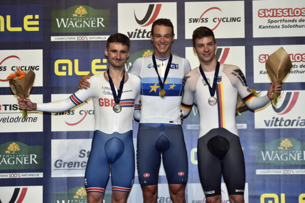 GRENCHEN (SVI) 10/2 – Jonathan Milan torna sulla pista di Grenchen a distanza di due anni e si riprende il titolo europeo dell’inseguimento in una finale al cardiopalmo contro il favorito Bigham. In testa a inizio gara, il friulano di Tolmezzo, 23 anni ad ottobre, attende l’ultimo chilometro per dare vita ad una rimonta che conclude con oltre 1” di vantaggio (4:03.744 contro i 4:05.860 dell’inglese). Per lui si tratta del secondo titolo continentale in questa edizione degli Europei, dopo quello di ieri nell’inseguimento a squadre. ‘Avevamo studiato la gara di Bigham e sapevamo che lui avrebbe fatto la parte centrale molto forte, per poi calare in quella finale. Sono contento perché non ho cercato di andare oltre all’inizio, ho fatto una gara costante, che mi ha permesso di recuperare tutto alla fine. Non ho il conto dei titoli conquistati su pista, ma una cosa la so, con questo gruppo di amici diventa tutto facile. Stiamo bene insieme e questo ci permette di raggiungere questi risultati.