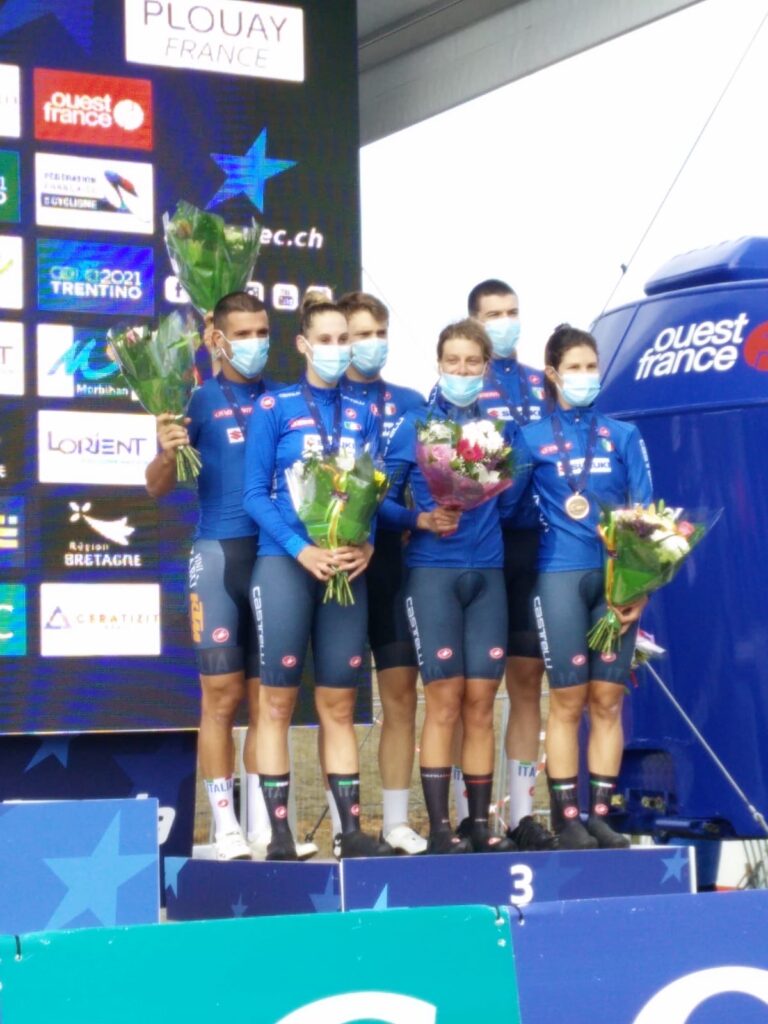 Con il Mixed Relay, cala il sipario sulla rassegna continentale a Plouay (Francia). Ed è proprio in questa gara che l’Italia, già bronzo nel 2019 quando la specialità debuttò agli europei, si conferma sul terzo gradino del podio dopo un duello, sui fili del secondo, con la Francia, fuori dal podio, nonché grande sconfitta. Per le #NazionaliCiclismo è il settebello tanto atteso: 7 medaglie di cui 3 ori, 1 argento e 3 bronzi che portano l’Italia al secondo posto nel medagliere per Nazioni alle spalle della sola Olanda.