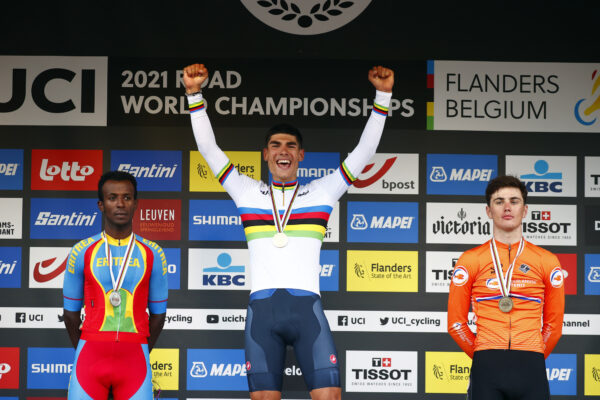 Volata per l’argento vinta dall’eritreo Biniam Girmay, terzo l’olandese Kooij davanti all’altro azzurro Michele Gazzoli. Un podio che conserva una bellezza iconica e metaforica, con la presenza di un rappresentante dell'emergente Africa accanto ad atleti provenienti da nazioni storiche nel ciclismo.