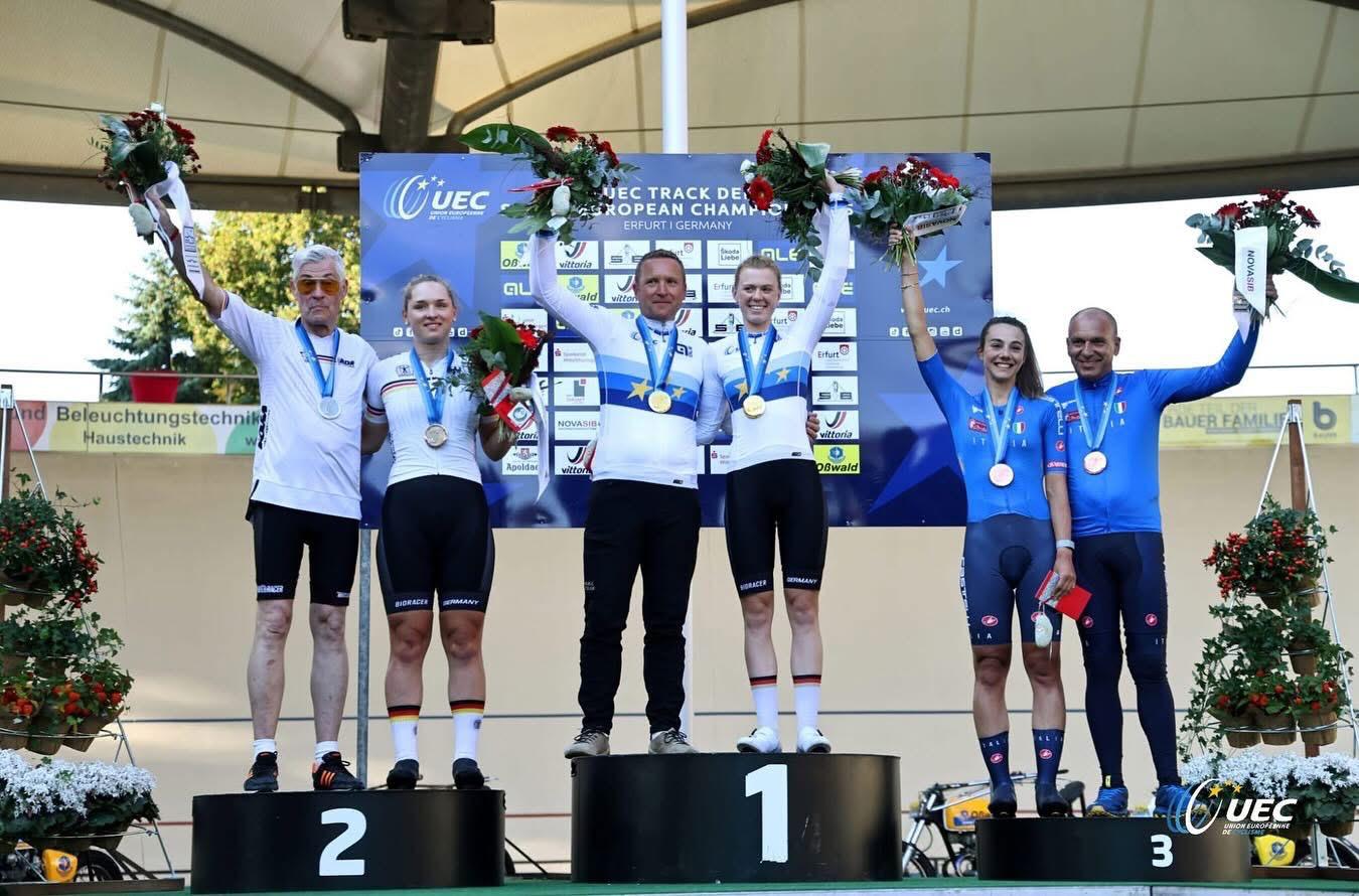 Nella giornata di sabato 6 settembre si sono svolti i Campionati europei Derny e Stayer nella cittadina di Erfurt, in Germania. L’Italia è salita sul podio grazie al terzo posto di Arianna Fidanza, che è tornata in pista dopo diversi anni, con Christian Dagnoni pilota. La gara è stata vinta dalla coppia tedesca Reibner-Mobus.