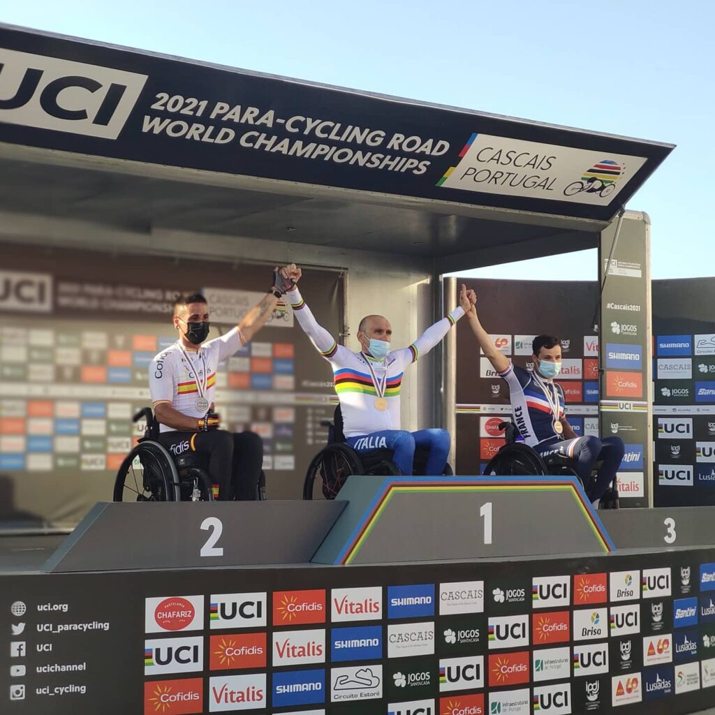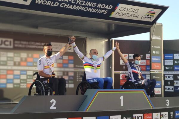 Luca Mazzone (H2) fa tripletta con la vittoria nella prova in linea, dopo quelle nella cronometro e nel Team Relay, mentre Fabrizio Cornegliani mette al collo la sua seconda medaglia a Cascais, stavolta d’argento (H1). Quinto posto per Paolo Cecchetto nella categoria H3, così come Diego Colombari nell’H5. Nono e decimo posto per Federico Mestroni e Martino Pini (H5).
