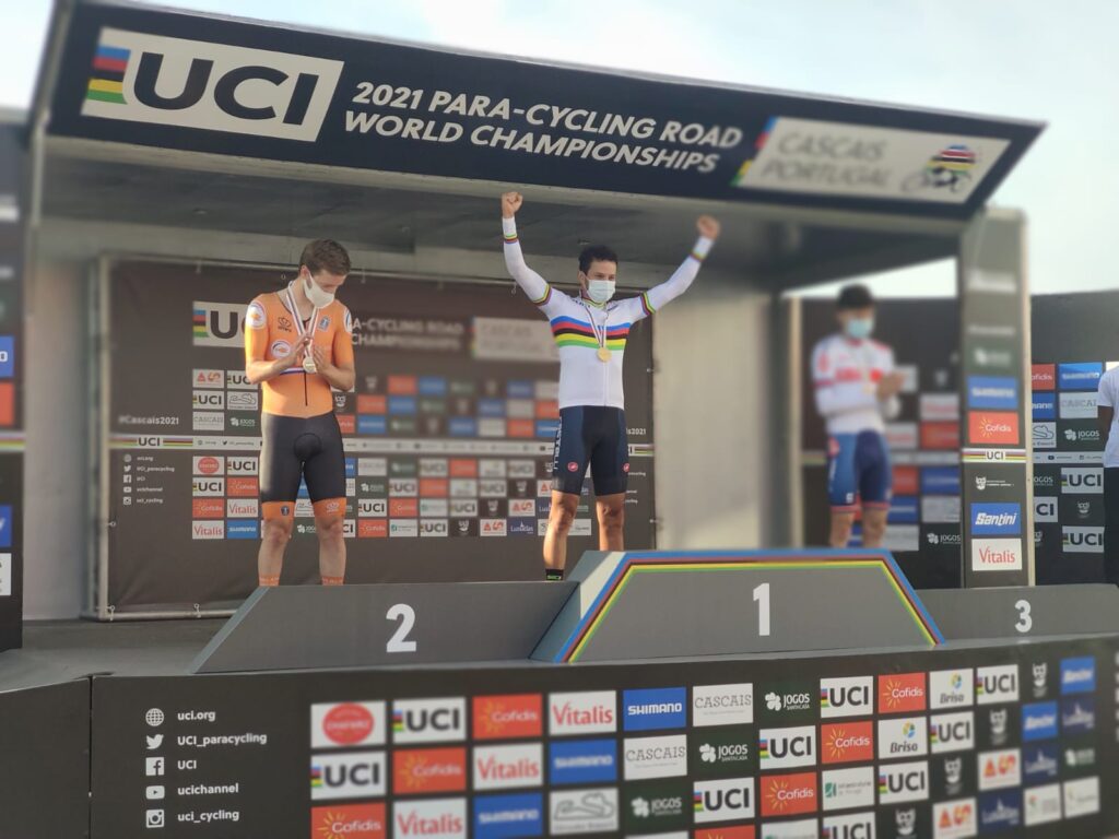Nella prova in linea di oggi a Cascais l’azzurro vince il suo primo titolo mondiale nella categoria C3