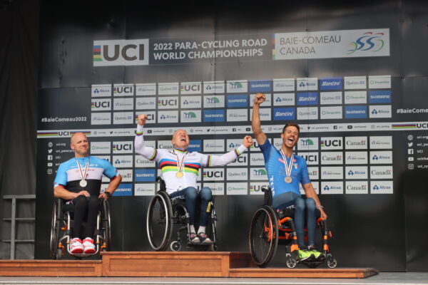 Baie-Comeau (CAN) – Avevano promesso uno spettacolo, e spettacolo è stato. Esordio col botto per la Nazionale paraciclismo, che nel primo giorno di gare al Mondiale di Baie-Comeau, nella giornata dedicata alle cronometro per handbike e tricicli, conquista quattro maglie iridate e ben dieci medaglie. “I soliti risultati” dice sorridendo il collaboratore tecnico Pierpaolo Addesi, che applaude i ragazzi capaci di confermare gli standard a cui ormai da anni ci stanno abituando. Sulla stessa lunghezza d’onda il CT Rino De Candido, che non poteva sperare di meglio al suo esordio Mondiale: “Si dice che chi ben comincia è a metà dell’opera. Quella di oggi è stata una bellissima giornata: sono arrivati risultati che ci stanno ripagando di tutti i sacrifici e del lavoro svolto quest’anno. Adesso aspettiamo le cronometro dei ciclisti, il Team Relay e le prove in linea per stilare un vero bilancio”.