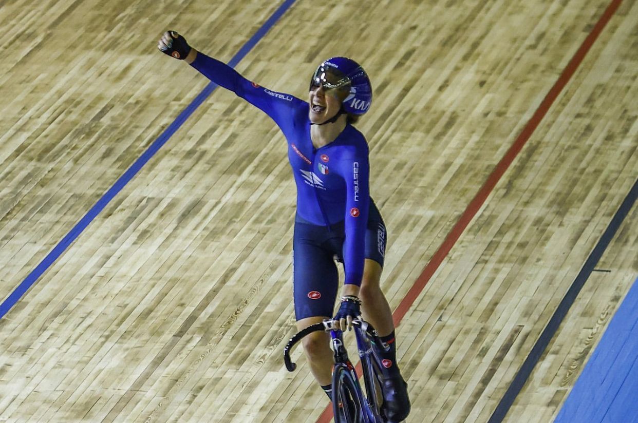 ROUBAIX (FRA) (20/10) – Un anno che non vorremmo finisse mai, questo 2021, almeno per quanto riguarda il ciclismo italiano. Il primo titolo assegnato ai Campionati del Mondo su Pista di Roubaix ha il sorriso di Martina Fidanza, 22 anni il prossimo novembre, di Ponte San Pietro, che vince con apparente facilità lo Scratch femminile.
