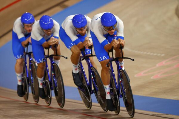 L'Italia dell'inseguimento c'è, e tocca il cielo con un dito. L'Inseguimento a squadre uomini torna sul tetto del mondo, e nel primo turno del torneo olimpico, contro la Nuova Zelanda, stampa il nuovo record (3'42"307) e completa un inseguimento di oltre 20 anni. Era, infatti, il 31 agosto del 1996 quando Adler Capelli, Cristiano Citton, Andrea Collinelli e Mauro Trentini fissavano a Manchester il limite mondiale di 4'00"958.