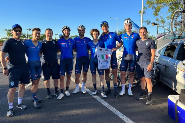 Nelle foto, in alto: il gruppo azzurro guidato per l’occasione da Fabio Masotti; sotto, da sinistra: Niccolò Galli riceve il premio quale miglior giovane e il podio della quinta ed ultima tappa vinta da Davide Boscaro.