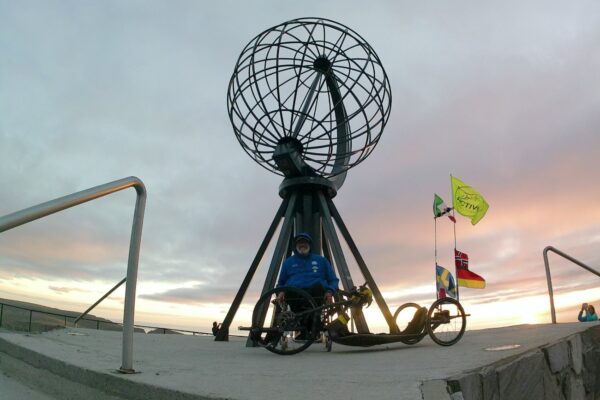 Brescia – Ci sono voluti 39 giorni di impegno e fatica, lungo i circa 4.000 chilometri che dividono Brescia da Capo Nord, ma Maurizio Antonini ha coronato il suo sogno. Partito giovedì 23 giugno da Piazza della Loggia a bordo della sua handbike, il 56enne di Castegnato è arrivato al punto più a nord d’Europa nella serata di domenica 31 luglio. Un’impresa, realizzata solo con la forza delle sue braccia, dai mille significati: umani, sociali ma anche sportivi, dove lo stesso sport viene interpretato come un mezzo per dimostrare – come da mission di Active Sport, di cui Antonini è socio fondatore – che a volte la disabilità si può sconfiggere. “I primi giorni – racconta Antonini dalla Norvegia – sono stati i più duri: a livello fisico facevo fatica e psicologicamente ho pensato di non farcela, ma mi sono detto di continuare a provarci, augurandomi che la situazione potesse migliorare”. È stato così, attraverso Italia, Austria, Germania, Danimarca, Svezia e quindi Norvegia, combattendo con qualche tappa bagnata dalla pioggia fino al famoso globo che simboleggia l’arrivo. “L’ultima salita è volata in un secondo: l’emozione di arrivare era così forte che non me ne sono nemmeno accorto”. E l’arrivo è stato degno di una star, visto che – per puro caso, dato l’anticipo sulla tabella di marcia – Antonini ha completato il percorso nell’unico giorno dell’anno senza tramonto, quindi Capo Nord era affollatissimo di turisti in attesa del sole di mezzanotte. Scoperta la sua storia grazie all’amica Liliana, che l’ha accompagnato nel viaggio con un furgone camperizzato e l’ha atteso all’arrivo, tutti i presenti hanno voluto tributargli un grande applauso, e poi l’hanno trattenuto a lungo per foto e chiacchiere.