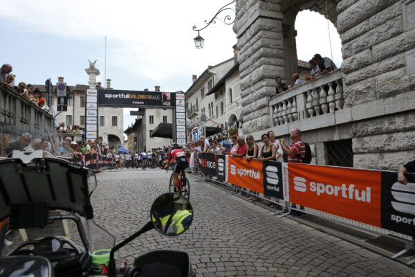 Ad attendere I granfondisti il 20 giugno ci sarà il tradizionale percorso lungo di 204km e quasi 5.000mt di dislivello totale con le salite a Cima Campo, Passo Manghen, Passo Rolle e Passo Croce d’Aune. Chi sceglierà il percorso Medio invece si troverà ad affrontare 120km con un dislivello totale di 3.200mt che li porterà dopo Cima Campo a scalare l’inedita salita a Passo Broccon attraverso la Val Malene e poi a scoprire le rampe del muro di Ronche-Rugna a Lamon (Nella foto l’arrivo in Piazza Maggiore)