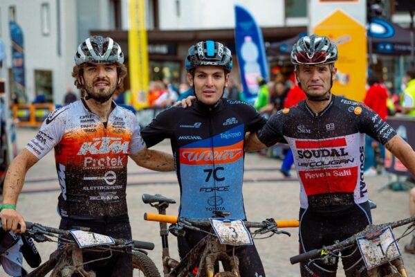 Alle 8.30 il via del Marathon, 77,2 km 2.476D+, che prevede gli inediti spettacolari passaggi alle 5 Torri, Forcella Averau e Tofanina, per poi transitare dal Passo Posporcora e Rifugio Mietres prima di scendere verso l’arrivo nel centralissimo Corso Italia, con il portale di partenza e arrivo posto a pochi metri dal campanile, uno dei simboli di Cortina. I primi chilometri non fanno selezione, con il tratto iniziale abbastanza scorrevole, costeggiando il torrente Boite e il gruppo di testa rimane folto, ma sulle prime dure rempe, verso le 5 Torri, a prendere l’iniziativa è Marco Rebagliati (Wilier 7c Force), seguito da Aleksei Medvedev (Soudal Leecougan Racing Team), Armin Dalvai (Rh Racing Kronplatzking) e Domenico Valerio (Ktm Protek Elettrosystem). In difficoltà Daniele Mensi, ancora sofferente per l’infortunio alla mano, che successivamente si ritirerà.